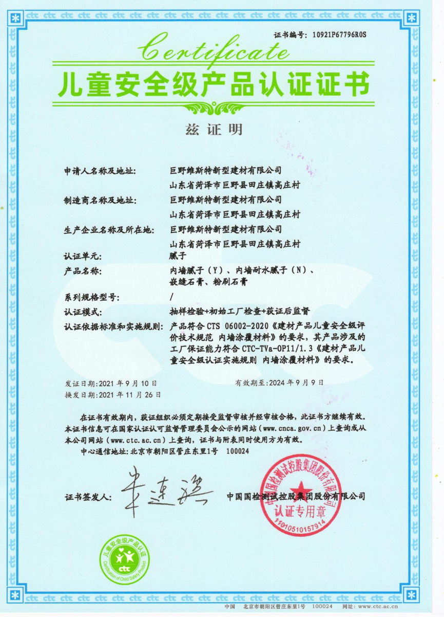 該系列通過中國建材中心頒發(fā)的“兒童安全級認(rèn)證證書”。(該證書是行業(yè)內(nèi)第二個榮獲兒童安全認(rèn)證產(chǎn)品),voc(揮發(fā)性有機(jī)化合物)、甲醛甲苯以及重金屬含量檢測標(biāo)準(zhǔn)要更加嚴(yán)格,產(chǎn)品符合《建材產(chǎn)品兒童安全級評價技術(shù)規(guī)范 內(nèi)墻涂覆材料》要求。
